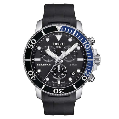 Tissot Seastar 1000 Black Silicone Strap Black Dial Chronograph Quartz Watch for Gents - T120.417.17.051.02