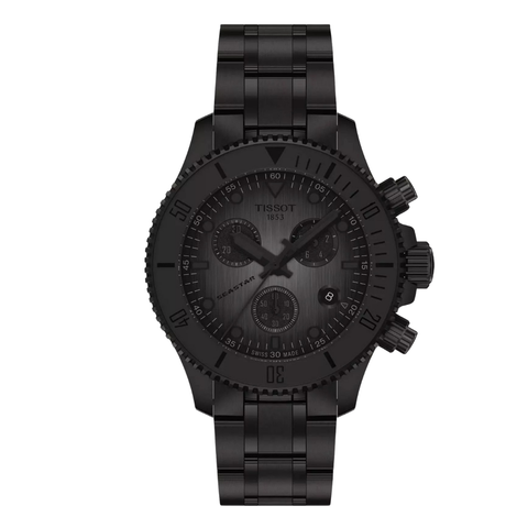 Tissot Seastar Black Stainless Steel Grey Dial Chronograph Quartz Watch for Gents - T120.217.33.061.00