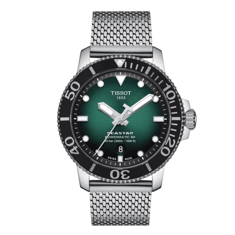 Add to WishlistTissot Seastar Silver Mesh Bracelet Green Dial Automatic Watch for Gents - T120.407.11.091.00