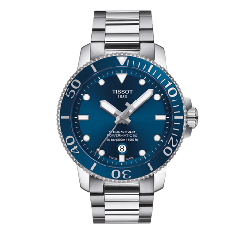 Tissot Seastar Silver Stainless Steel Blue Dial Automatic Watch for Gents - T120.407.11.041.03