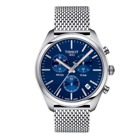 Add to WishlistTissot T-Classic Silver Mesh Bracelet Blue Dial Chronograph Quartz Watch for Gents - T101.417.11.041.00