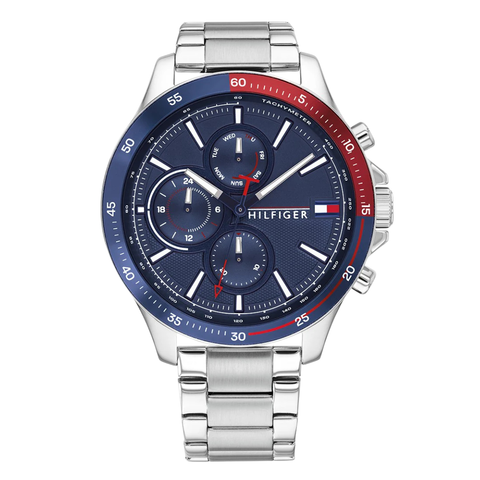 Tommy Hilfiger Bank Silver Stainless Steel Blue Dial Chronograph Quartz Watch for Gents - 1791718