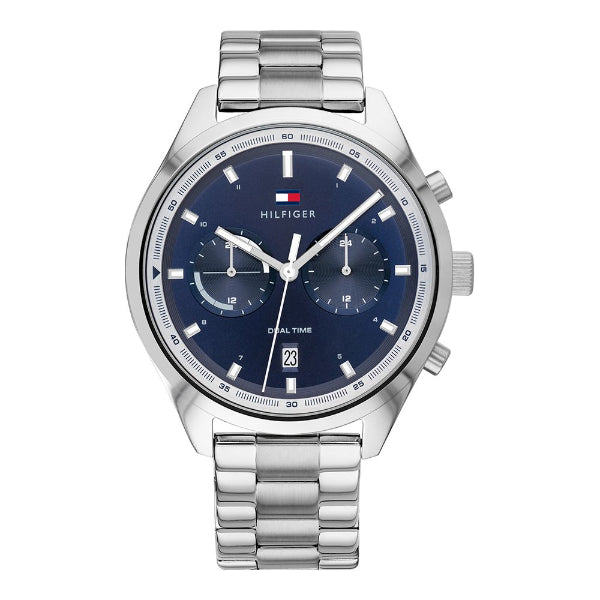 Tommy Hilfiger Bennett Silver Stainless Steel Blue Dial Chronograph Quartz Watch for Gents - 1791725