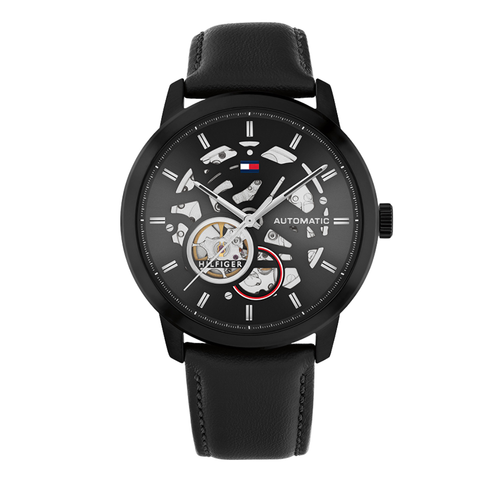 Tommy Hilfiger Black Leather Strap Black Dial Automatic Watch for Gents - Tommy Hilfiger 1710659