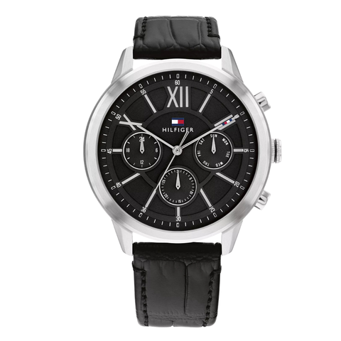 Tommy Hilfiger Black Leather Strap Black Dial Chronograph Quartz Watch for Gents - Tommy Hilfiger 1710527
