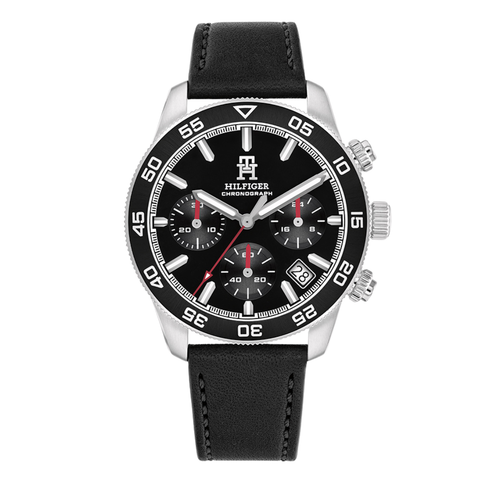 Tommy Hilfiger Black Leather Strap Black Dial Chronograph Quartz Watch for Gents - Tommy Hilfiger 1792162