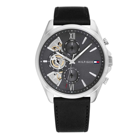 Tommy Hilfiger Black Leather Strap Grey Dial Chronograph Automatic Watch for Gents - Tommy Hilfiger 1710644