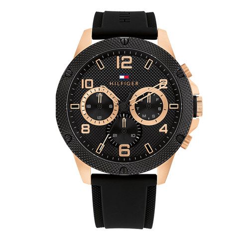 Tommy Hilfiger Black Silicone Strap Black Dial Chronograph Quartz Watch for Gents - Tommy Hilfiger 1792028