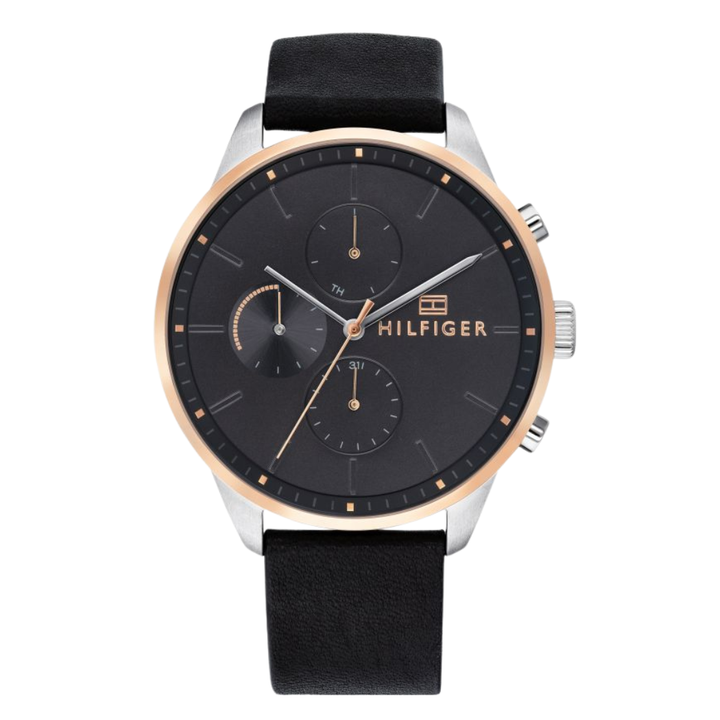 Tommy Hilfiger Chase Black Leather Strap Black Dial Chronograph Quartz Watch for Gents - 1791488