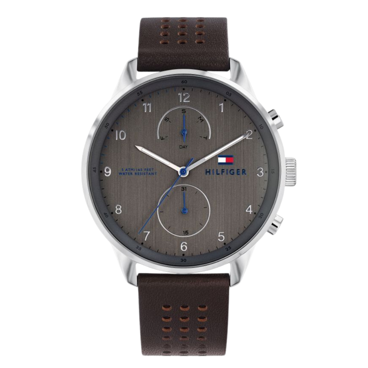 Tommy Hilfiger Chase Brown leather strap Grey Dial Chronograph Quartz Watch for Gents - 1791579