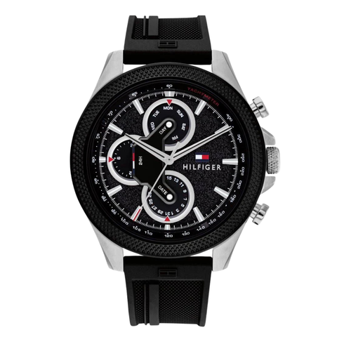 Tommy Hilfiger Clark Black Silicone Strap Black Dial Chronograph Quartz Watch for Gents - 1792082