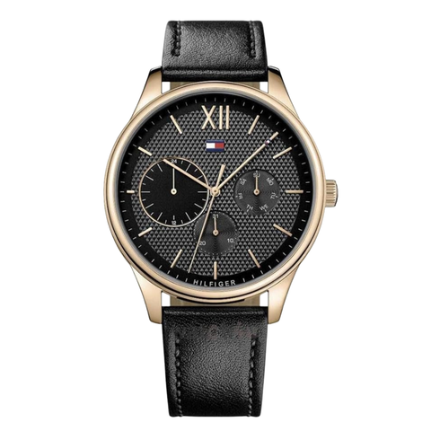 Tommy Hilfiger Damon Black Leather Strap Black Dial Quartz Watch for Gents - 1791419