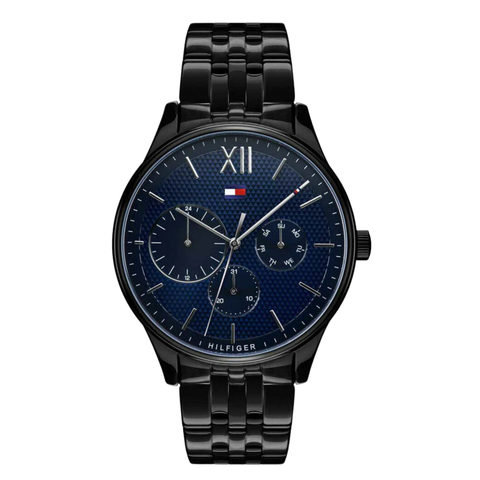 Tommy Hilfiger Damon Black Stainless Steel Blue Dial Quartz Watch for Gents - 1791454