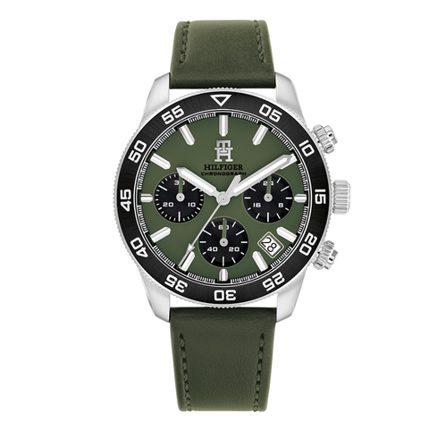 Tommy Hilfiger Dark Green Leather Strap Green Dial Chronograph Quartz Watch for Gents - Tommy Hilfiger 1792188