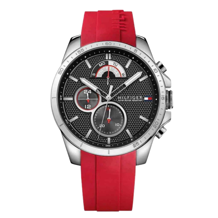 Tommy Hilfiger Decker Red Rubber Strap Black Dial Chronograph Quartz Watch for Gents - 1791351