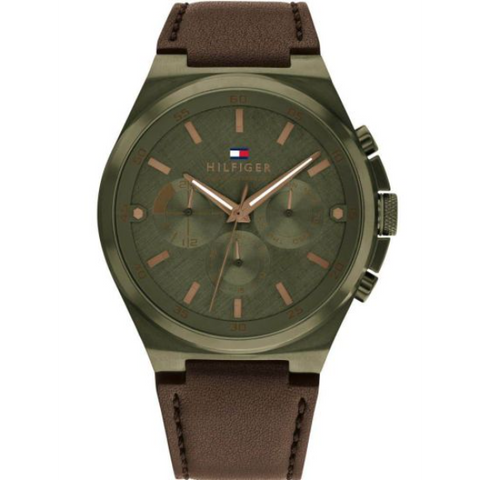 Add to WishlistTommy Hilfiger Dexter Brown Leather Strap Green Dial Chronograph Quartz Watch for Gents - 1792085