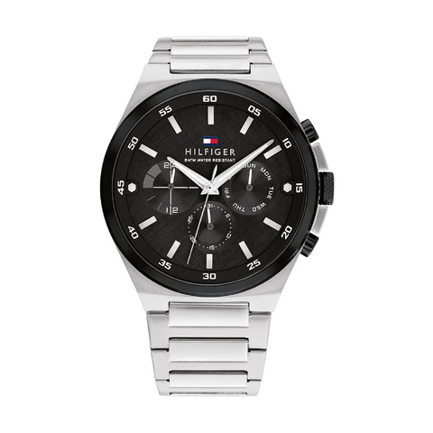 Add to WishlistTommy Hilfiger Dexter Silver Stainless Steel Black Dial Chronograph Quartz Watch for Gents - 1792087