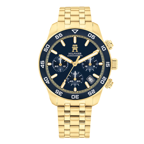 Tommy Hilfiger Gold Stainless Steel Blue Dial Chronograph Quartz Watch for Gents - Tommy Hilfiger 1792158