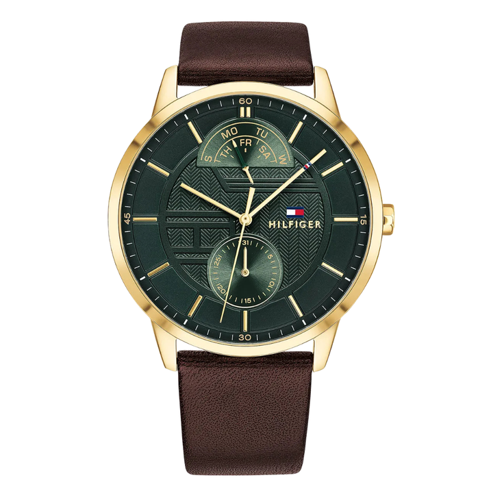 Add to WishlistTommy Hilfiger Hunter Brown Leather Strap Green Dial Quartz Watch for Gents - 1791607