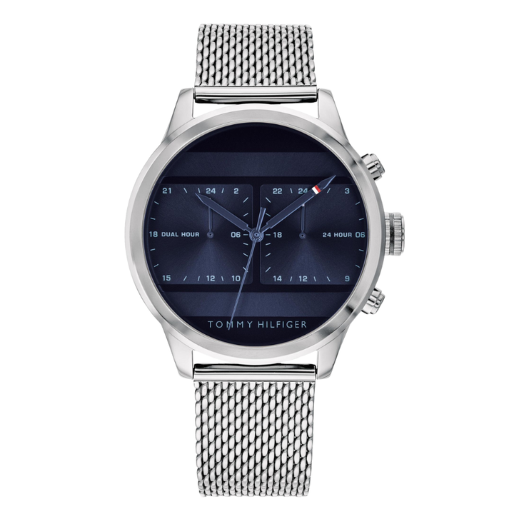 Tommy Hilfiger Icon Silver Mesh Bracelet Blue Dial Chronograph Quartz Watch for Gents - 1791596