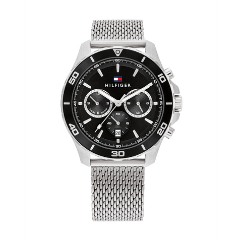 Add to WishlistTommy Hilfiger Jordan Silver Mesh Bracelet Black Dial Chronograph Quartz Watch for Gents - 1792092