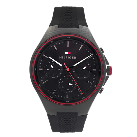 Tommy Hilfiger Justin Black Silicone Strap Black Dial Chronograph Quartz Watch for Gents - 1792056