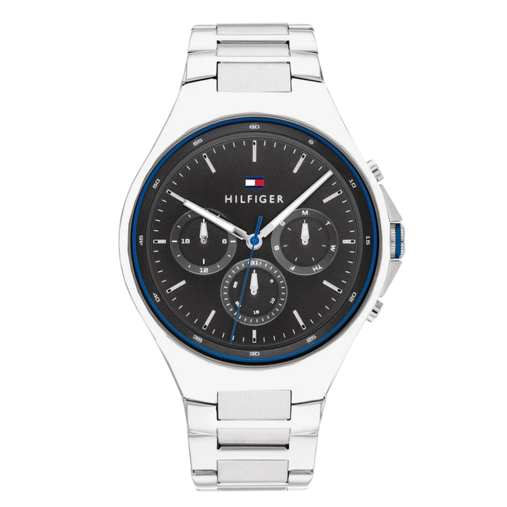 Tommy Hilfiger Justin Silver Stainless Steel Black Dial Chronograph Quartz Watch for Gents - 1792054