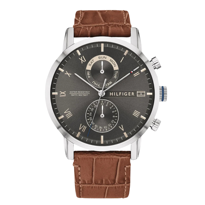 Tommy Hilfiger Kane Brown Leather Strap Black Dial Chronograph Quartz Watch for Gents - 1710398