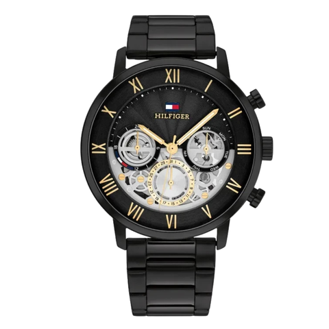Tommy Hilfiger Legend Black Stainless Steel Black Dial Chronograph Quartz Watch for Gents - 1710706