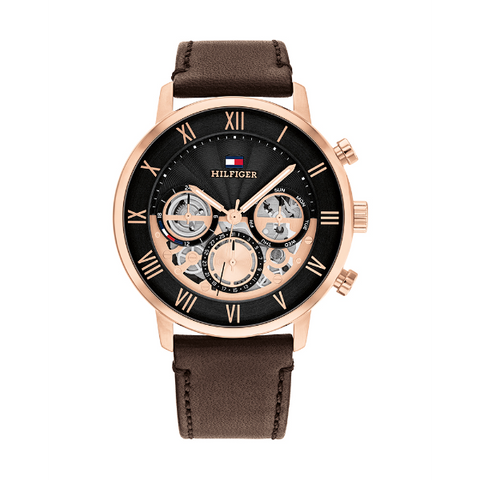 Add to WishlistTommy Hilfiger Legend Brown Leather Strap Black Dial Chronograph Quartz Watch for Gents - 1710566