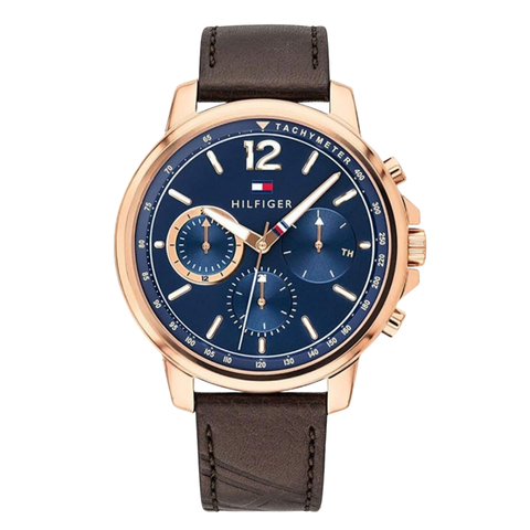 Tommy Hilfiger London Brown Leather Strap Blue Dial Chronograph Quartz Watch for Gents - 1791532