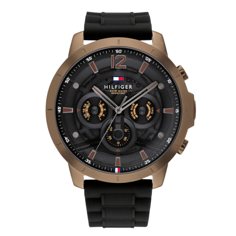Tommy Hilfiger Luce Black Silicone Strap Black Dial Chronograph Quartz Watch for Gents - 1710491