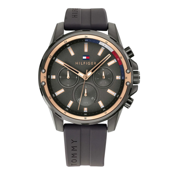 Tommy Hilfiger Mason Grey Silicone Strap Grey Dial Chronograph Quartz Watch for Gents - 1791792