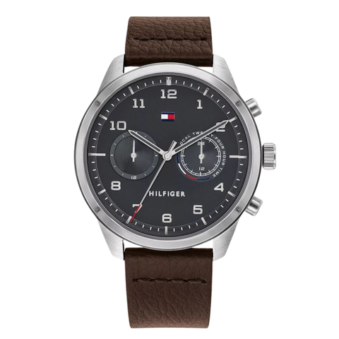Tommy Hilfiger Patrick Brown Leather Strap Grey Dial Chronograph Quartz Watch for Gents - 1791785