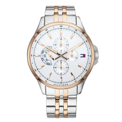 Tommy Hilfiger Shawn Two-tone Stainless Steel White Dial Quartz Watch for Gents - 1791617