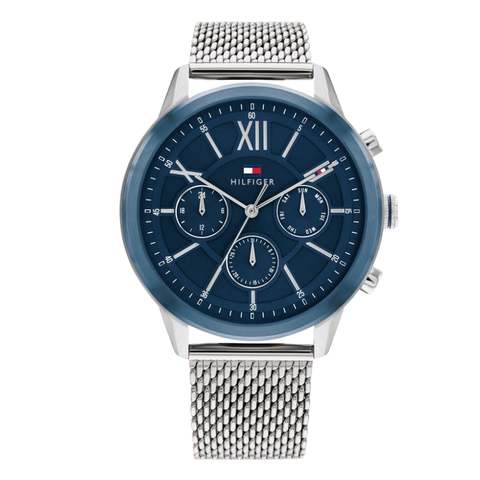 Tommy Hilfiger Silver Mesh Bracelet Blue Dial Chronograph Quartz Watch for Gents - Tommy Hilfiger 1710524