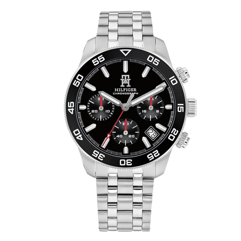 Tommy Hilfiger Silver Stainless Steel Black Dial Chronograph Quartz Watch for Gents - Tommy Hilfiger 1792156