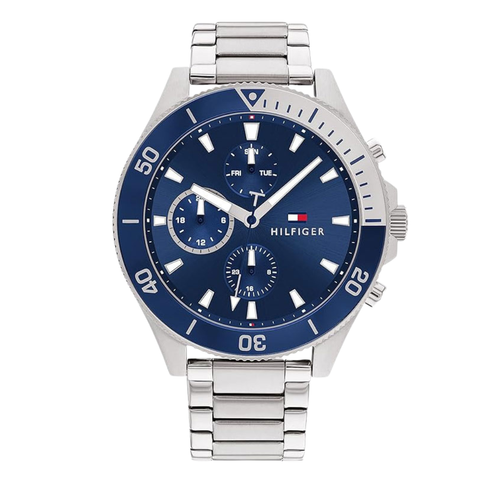 Tommy Hilfiger Silver Stainless Steel Blue Dial Chronograph Quartz Watch for Gents - Tommy Hilfiger 1791917