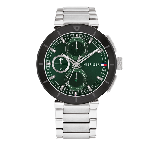 Tommy Hilfiger Silver Stainless Steel Green Dial Chronograph Quartz Watch for Gents - Tommy Hilfiger 1792117