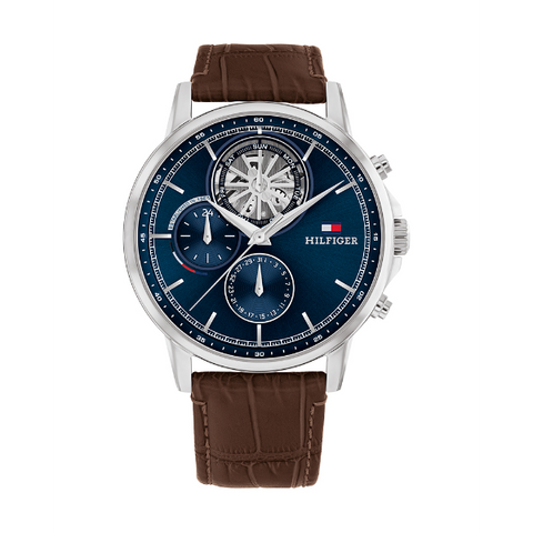 Add to WishlistTommy Hilfiger Stewart Brown Leather Strap Blue Dial Chronograph Quartz Watch for Gents - 1710629