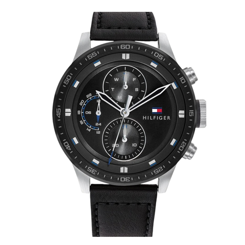 Tommy Hilfiger Trent Black Leather Strap Black Dial Chronograph Quartz Watch for Gents - 1791810