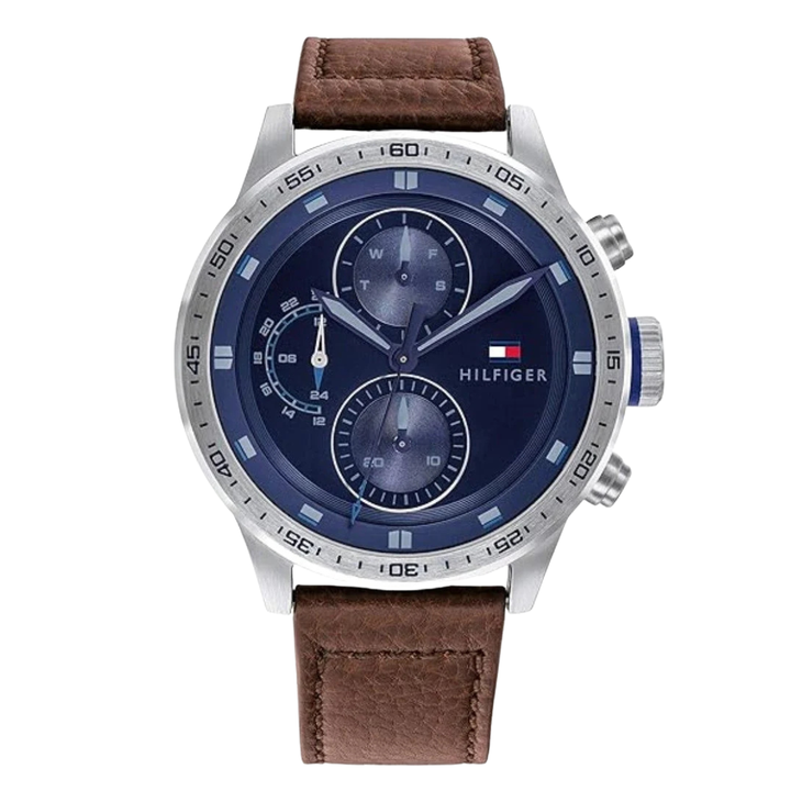 Tommy Hilfiger Trent Brown Leather Strap Blue Dial Chronograph Quartz Watch for Gents - 1791807