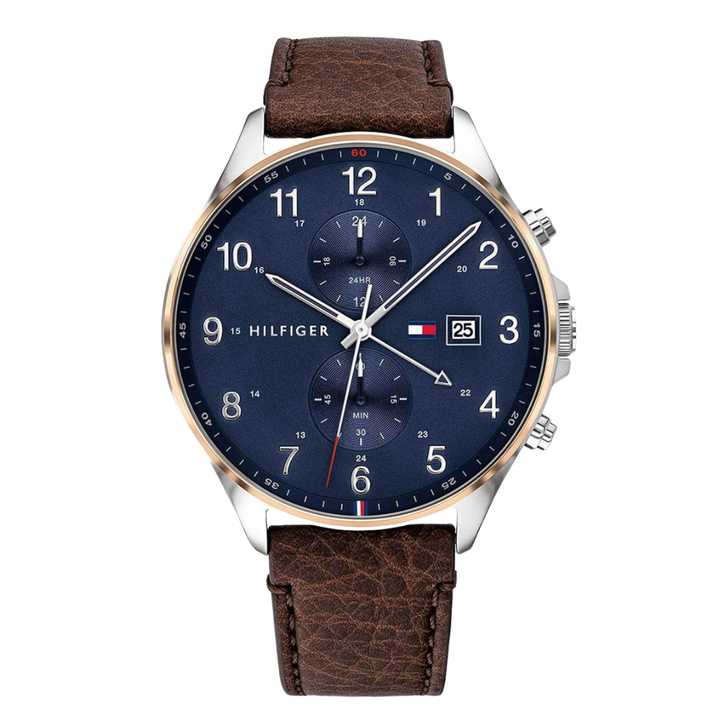 Tommy Hilfiger West Brown Leather Strap Blue Dial Chronograph Quartz Watch for Gents - 1791712