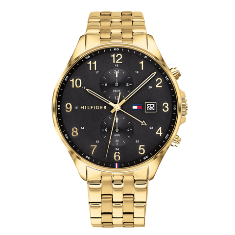 Add to WishlistTommy Hilfiger West Gold Stainless Steel Black Dial Chronograph Quartz Watch for Gents - 1791708