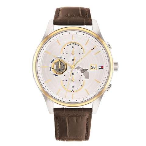 Tommy Hilfiger Weston Brown Leather Strap Silver Dial Chronograph Quartz Watch for Gents - 1710501