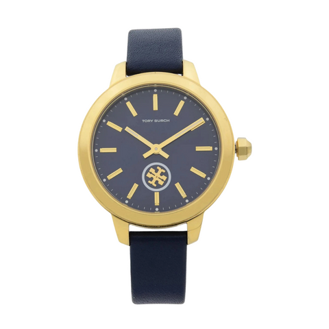 Tory Burch Collins Navy Leather Strap Navy Dial Quartz Watch For Ladies – TBW1203