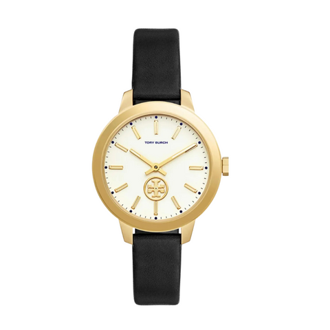 Tory Burch Collins Black Leather Strap Cream Dial Quartz Watch For Ladies – TBW1205