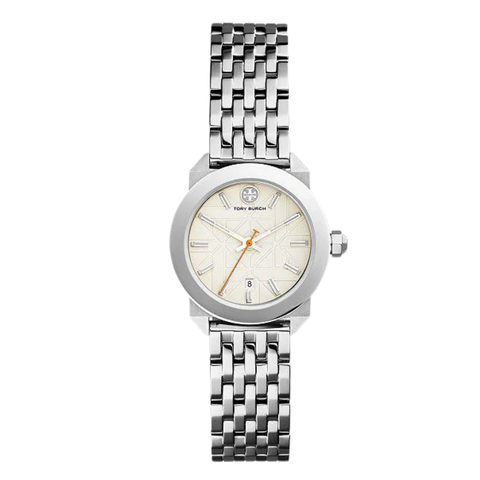Tory Burch Silver Stainless Steel Ivory Dial Quartz Watch for Ladies - TBW8001