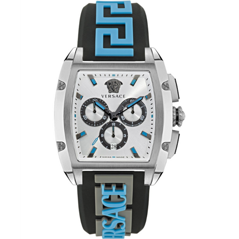 Versace Dominus Black Silicone Strap Silver Dial Chronograph Quartz Watch for Gents - VE6H00123