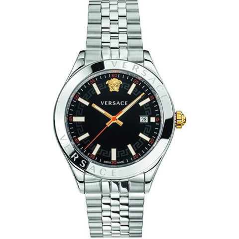 Versace Greca Logo Silver Stainless Steel Black Dial Quartz Watch for Gents - VEVK00420